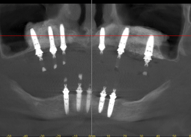 2014-ben Magyarországról én végeztem el legelsőként ill. kaptam Zygoma Certifikátot. Ez 2014-es legelső esetünk 2 db Zygoma implantátummal. a CT 2025 decemberi kontrollon készült, ma is tökéletes.. Műtét után azonnal terheltük.